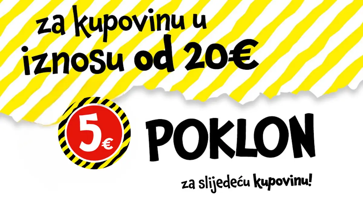 Od 6. listopada do 2. studenog za kupovinu u vrijednosti od najmanje 20 € (nakon odbitka popusta, pologa itd.), dobivaš kupon od 5 € za sljedeću kupovinu. Iskoristi super akciju u Tedi trgovinama!